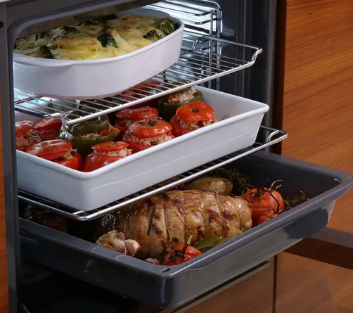 Με το καινοτόμο σύστημα ThermoFlow, ο φούρνος σου μπορεί να μαγειρέψει ταυτόχρονα έως και τρία διαφορετικά φαγητά, χωρίς οι γεύσεις και οι οσμές τους να αναμειγνύονται. Αυτό σημαίνει ότι η προετοιμασία του κυριακάτικου τραπεζιού ή ενός πάρτι στο σπίτι γίνεται πιο εύκολη και οικονομική. Οι τρεις επίπεδες σχάρες εξασφαλίζουν ομοιόμορφο ψήσιμο, ώστε κάθε πιάτο να είναι ακριβώς όπως το θέλεις, χωρίς κόπο και άγχος.