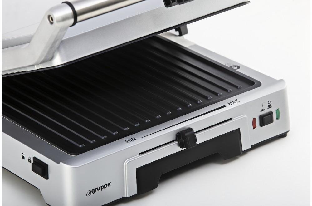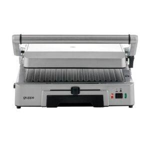 Η Gruppe AJ 5002A Inox ξεχωρίζει γιατί συνδυάζει ισχυρή απόδοση, μεγάλη επιφάνεια ψησίματος και ευκολία στο καθάρισμα χάρη στις αποσπώμενες πλάκες.