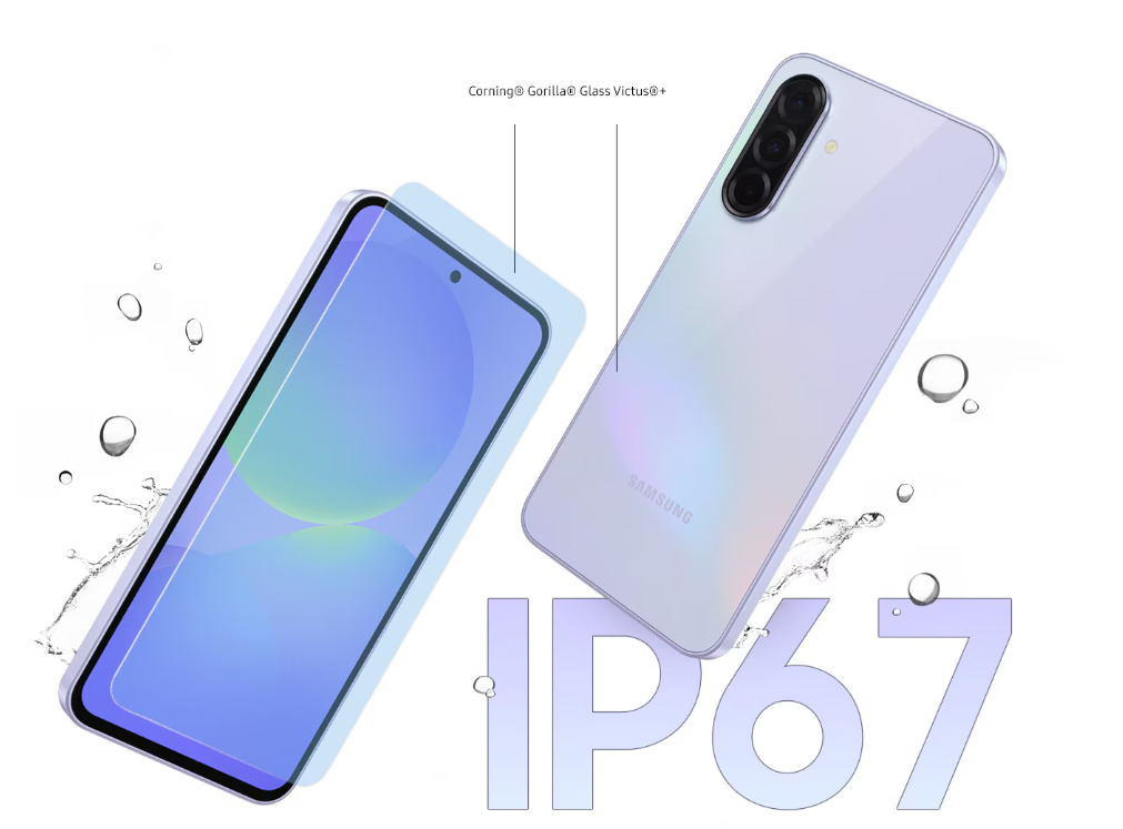 Το Corning Gorilla Glass Victus+ διατηρεί την εντυπωσιακή σχεδίαση του Galaxy A36 5G. Και με προστασία IP67, η νέα σειρά Galaxy A παραμένει ανθεκτική στο γλυκό νερό (έως και 1m και για 30′) και στη σκόνη.